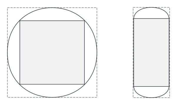 The gray areas in the illustration represent the safe areas for circular and capsule screens, respectively.
